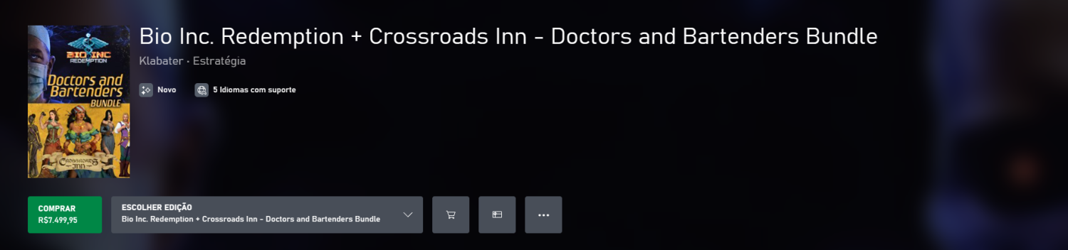 Isso mesmo, um bundle que custa quase oito mil reais! O bundle em questão é o “Bio Inc. Redemption + Crossroads Inn – Doctors and Bartenders Bundle“, que foi lançado recentemente pela publicadora Klabater. No Brasil, o bundle custa a bagatela de R$7.500 na Xbox Store, enquanto chega a custar US$2.000 nos Estados Unidos.