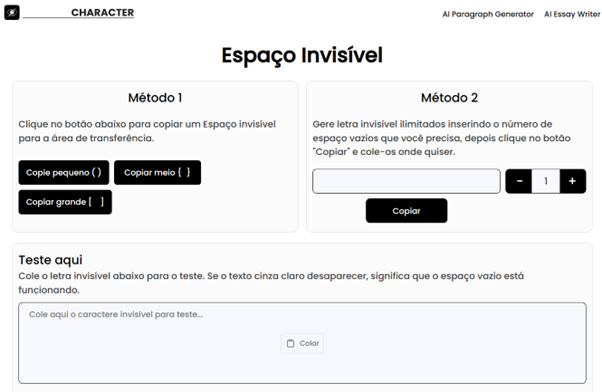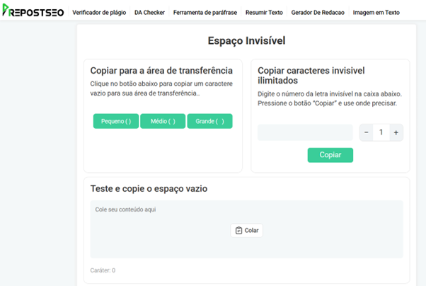(URL: https://www.prepostseo.com/br/espaco-invisivel)